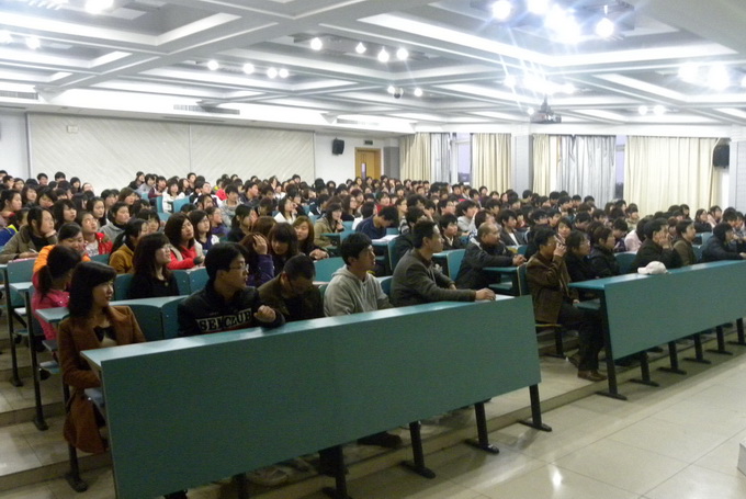 322晚,由必一运动教学和学工两个部门联合组织,成功举办了面向09级员工、班主任和专业指导老师的校外写生采风安全文明教育讲座。系分团委书记潘逸主持了本次讲座。系副主任肖新华、党总支副书记檀祝平等领导应邀出席并聆听了讲座。