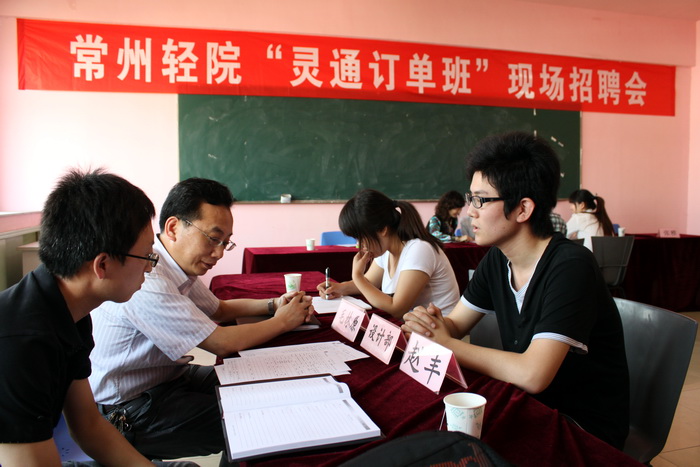 在公司领导的殷切关怀和积极推动下,经过与常州灵通认真沟通和细致筹备,按预先的计划安排,常州灵通展览用品有限公司副总裁丁慧一行专程来公司举办面向10会展订单班的专场招聘会,选拔适合设计、管理、技术和服务等4种岗位的员工进入企业顶岗实习。灵通企业对此次招聘高度重视,企业副总裁丁慧带领4个部门经理以及2位人事部专员现场招聘。公司市场部部长葛天林出席了招聘现场。必一运动主任方四文主持。