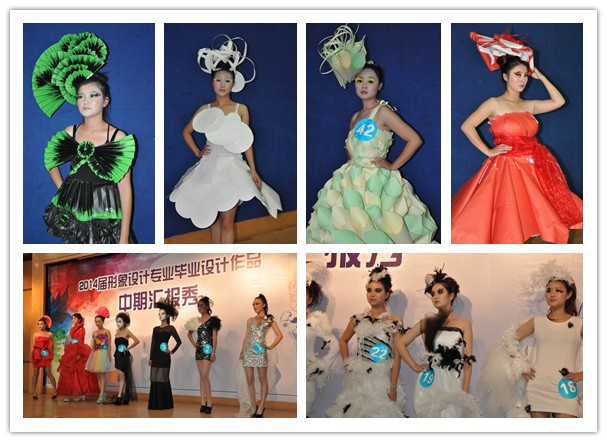 踏着美妙的音乐节奏,模特们用自信的身姿展示出11形象331班30名员工设计师创作的60多套系列毕业设计作品,其中创意婚庆形象设计系列和创意环保形象设计系列以带给观众前所未有的视觉震撼:报纸经过揉搓、堆叠,运用立体裁剪的方法设计成了“新娘”蛋糕裙小礼服和“新郎”带有图腾感觉的个性时装;垃圾袋、卡纸经过折叠、拼贴、缠绕,搭配高雅的妆容创意成了晚宴别具一格的娇媚形象;日本浮世绘的表现技法与彩妆相结合,搭配纱网头饰与黑色鱼尾修身裙,展现出浓烈的东瀛气息;糖果色的钮扣与蕾丝的镶嵌、组合,变成了充满童趣的甜美风格系列饰品。现场评委们和观众用阵阵热烈的掌声表达对设计师们的赞许与鼓励。