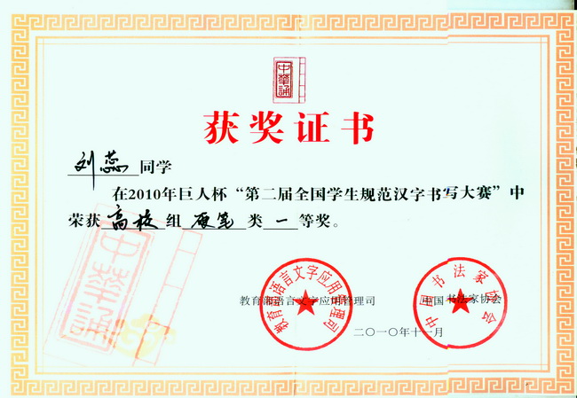 获得第二届全国员工规范汉字书写大赛高校组一等奖的必一运动09广告331班的刘蕊同学以及三等奖获得者09造型331班李方圆同学载誉归来,公司党总支金培珍书记、方四文主任、檀祝平副书记于11月18日在工训楼109室亲切接见了他们及其指导老师孙爱民副教授。获奖员工及其指导老师与公司领导进行了座谈。 在座谈会上,孙爱民老师介绍了本次大赛的具体情况以及辅导员工参加竞赛的整个过程。此次全国员工规范汉字书写大赛自2010年5月启动以来,全国共有938万余名员工参赛,被上海大世界吉尼斯总部认证为“规模最大的规范汉字书写大赛”,其中不乏很多书法专业选手,但刘蕊同学沉着冷静,认真准备,在众多选手中取得了书法技艺排名第七,综合素质排名第十并荣获高校组一等奖的好成绩,这也是江苏高职院校唯一的“一等奖”。 金培珍书记感谢孙爱民老师付出的艰辛及专业的指导,并向刘蕊同学、李方圆同学表示祝贺。方四文主任鼓励获奖同学再接再厉,继续发挥自己在书法方面的特长,在以后的书法比赛及其他艺术专业大赛中不断高奏凯歌,为系部和公司争光。檀祝平副书记希望刘蕊同学和李方圆同学在自己获得成功的前提下,积极与其他同学分享自己的经验和心得,通过模范带头作用进一步带动必一运动员工参加各类专业竞赛,并取得好成绩。 刘蕊同学和李方圆同学对必一运动各位领导和老师在学习和生活上给予她们的帮助表示了由衷的感谢,并承诺将以今天所取得的成绩为新的起点,在以后的学习和生活中不断奋进,以自己的实际行动来感染身边的每一位同学,带动大家一起进步,为丰富必一运动竞赛文化作出进一步的贡献。