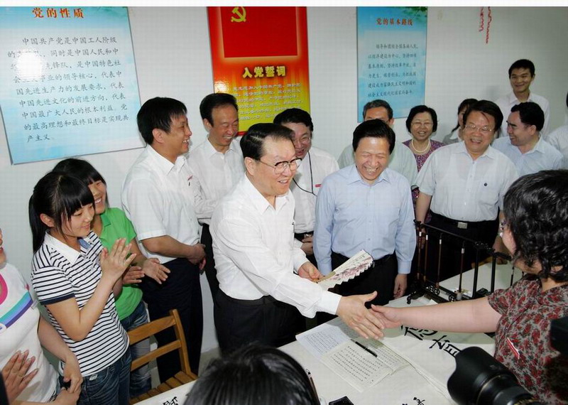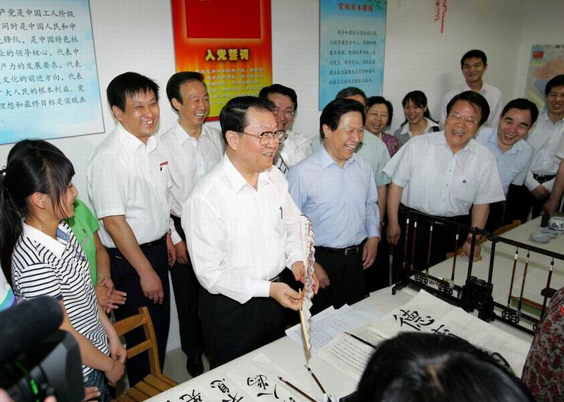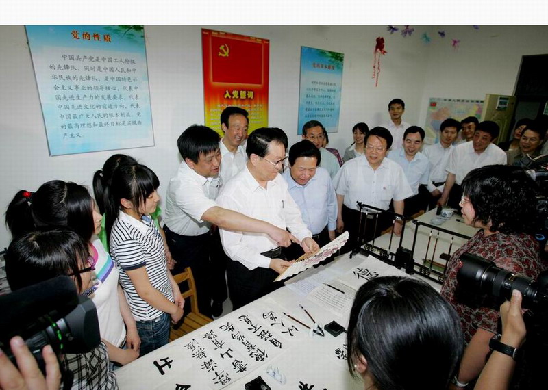 2009年5月9日下午,中共中央政治局常委李长春,在江苏省委书记梁保华、常州市委书记范燕青、副市长王成斌、市委宣传部代部长徐缨、常州轻工职业技术公司党委书记杨兴华、经理周大农等省市、院领导的陪同下,视察了公司。李长春同志深入员工宿舍、走访员工活动室,亲切看望了我系书画协会的师生。在与师生交流的过程中,江苏省青年画家、必一运动周颖老师向李长春同志赠送了自己绘画并题名的一把折扇。李长春同志端详着这把折扇,认真地品味上面的画作。他勉励周颖老师和她指导的书画协会的同学好好学习,认真作画。领导的谆谆教导给书画协会的同学极大的鼓舞,他们一致表示,一定要认真学习,钻研专业业务,以最好的成绩来感谢领导的关怀,更好地为社会做出贡献。