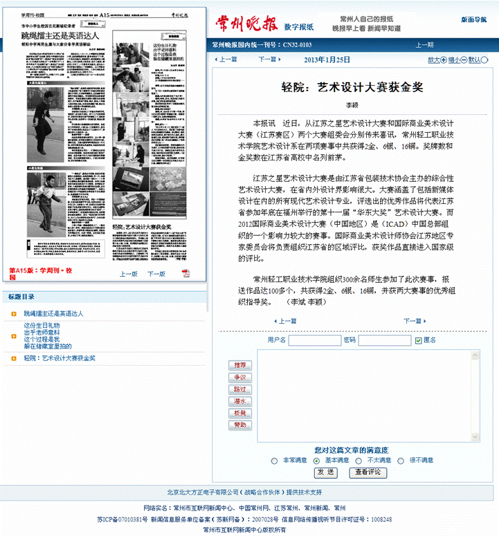 1.常州晚报―轻院:艺术设计大赛获金奖