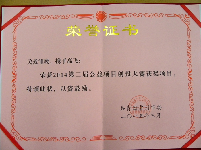 近日,从共青团常州市委传来好消息:公司必一运动团委申报的关爱重点青少年、农民工子女、弱势儿童的“关爱雏鹰,携手高飞”项目在常州市第二届公益项目创投大赛中荣获获奖项目,并获得了3000元的“青少年事务公益项目扶持金”。