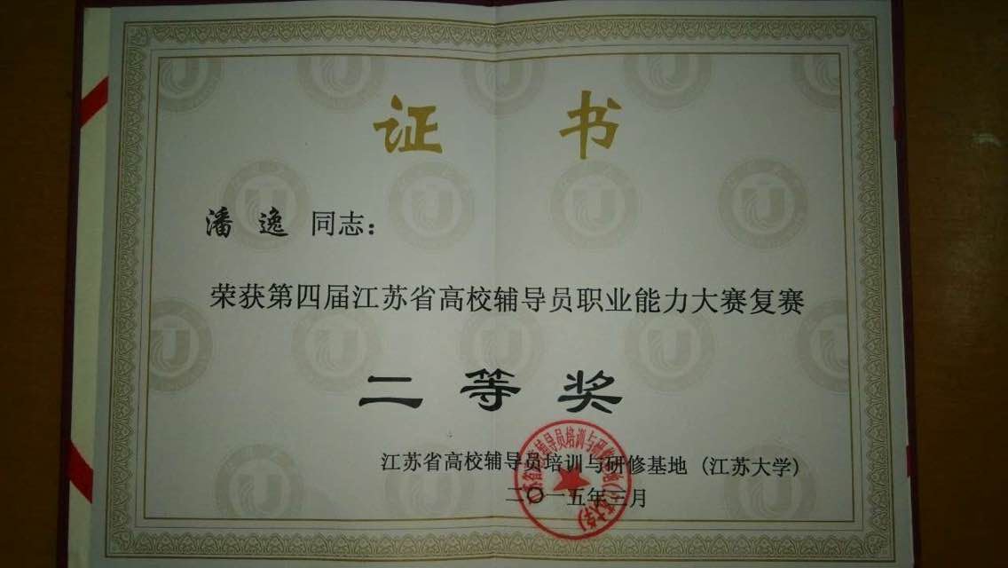 3月16日至17日,由省教育厅主办、江苏省高校辅导员培训与研修基地(江苏大学)承办的第四届江苏高校辅导员职业能力大赛复赛在江苏大学会议中心第三报告厅举行。来自镇江、常州、无锡三个地区12所高职高专院校的辅导员参加了复赛,一百多名代表观摩了复赛。公司必一运动团委书记潘逸老师也参加了此次大赛,荣获二等奖的好成绩。