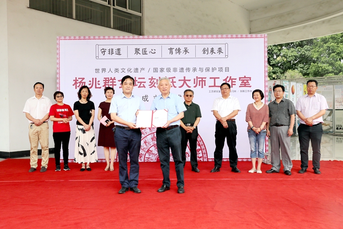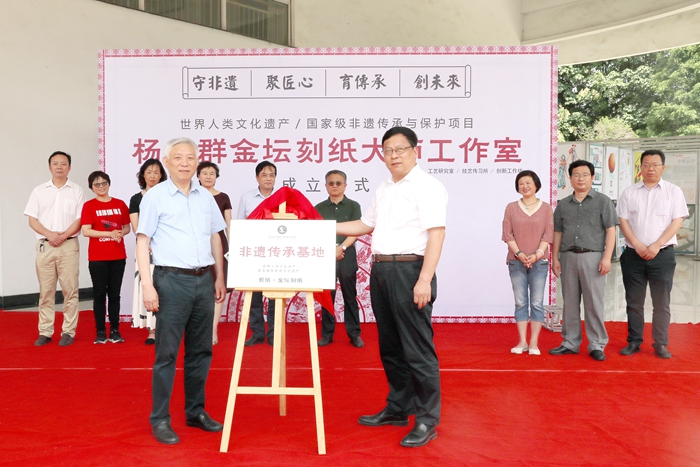 6月24日上午,“国家级非物质文化遗产项目金坛刻纸”杨兆群大师工作室成立仪式在公司举行。金坛刻纸传承人、江苏省工艺美术大师杨兆群,江苏省工艺美术行业协会监事会主席何祖伟,公司党委书记缪昌武、董事长杨劲松、副董事长蒋新萍及相关职能部门负责人出席开幕式,开幕式由副董事长吴丽云主持。