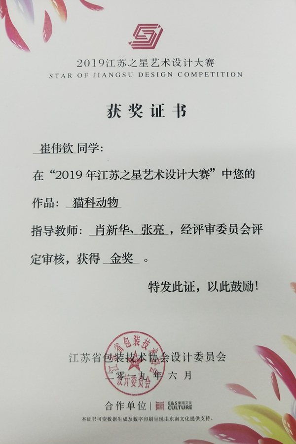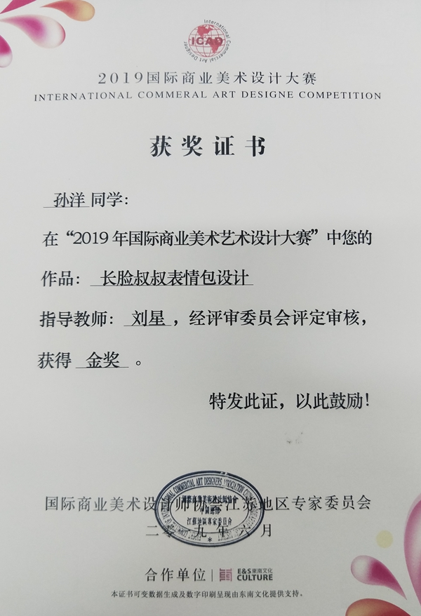日前,2019国际商业美术设计大赛和江苏之星设计大赛评审结果揭晓,公司必一运动肖新华、张亮老师指导,崔伟钦创作的作品《猫科动物》和刘星老师指导,孙洋创作的作品《长脸叔叔表情包设计》喜获金奖。