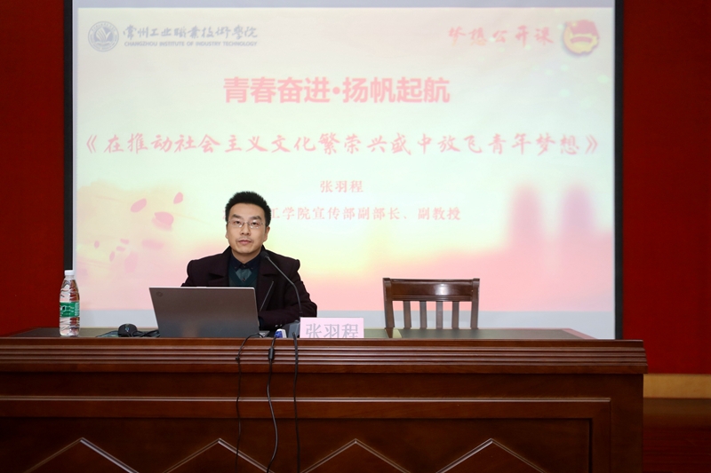 公开课上,张羽程从“青春是什么颜色”谈起,和广大青年员工分享了青春的底色应该是奋斗。结合近日中共中央、国务院印发的《新时代爱国主义教育实施纲要》内容,呼吁让爱国主义教育走近教育对象的内心世界,让爱国教育更走心。结合青年员工喜闻乐见的文化元素,生动形象的短视频素材,从国家文化、江苏文化、常州文化三个层面,结合时事热点,和青年人共同探讨社会主义文化繁荣背景下,当代青年应如何找准自身定位,为青年学子的成长发展指明方向,为中国梦的实现凝聚青春力量。