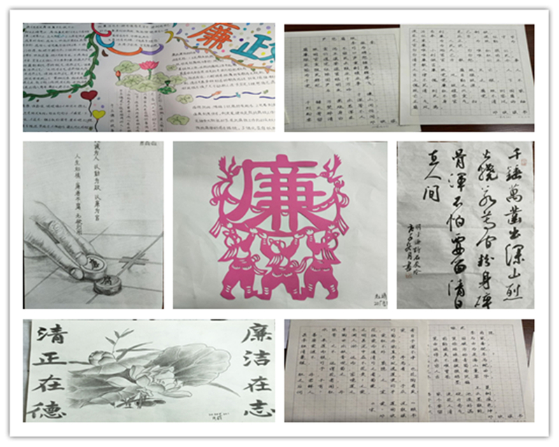 廉政书画作品展旨在通过书画的艺术表现形式,给广大师生以启迪和警示。本次廉政文化主题作品征集受到了员工们的积极响应,征集作品内容丰富、形式多样,通过多种表现形式传播廉政文化,诠释廉政理念,弘扬清正廉洁之风。作品涵盖廉政文化宣传手抄报、非遗项目金坛刻纸廉政文化作品、廉政主题书法作品等,通过作品征集,让廉政文化的种子播撒进每位师生的内心。