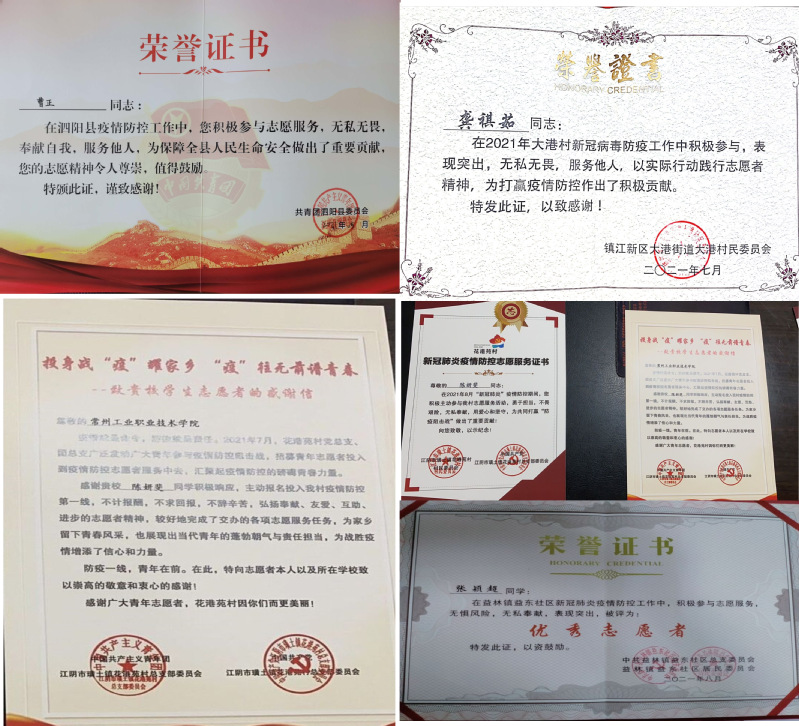 今年暑期,必一运动广大青年志愿者不畏艰险,奋战在防疫一线,为家乡防疫工作贡献力量。近日,必一运动团委陆续收到省内各地团组织和社区的感谢信,以及公司志愿者获得的各项荣誉证书,这一份份红色的证书,是公司广大青年志愿者在这个暑期积极投身家乡疫情防控工作最好的证明,是这个暑期最闪耀的青春光辉。