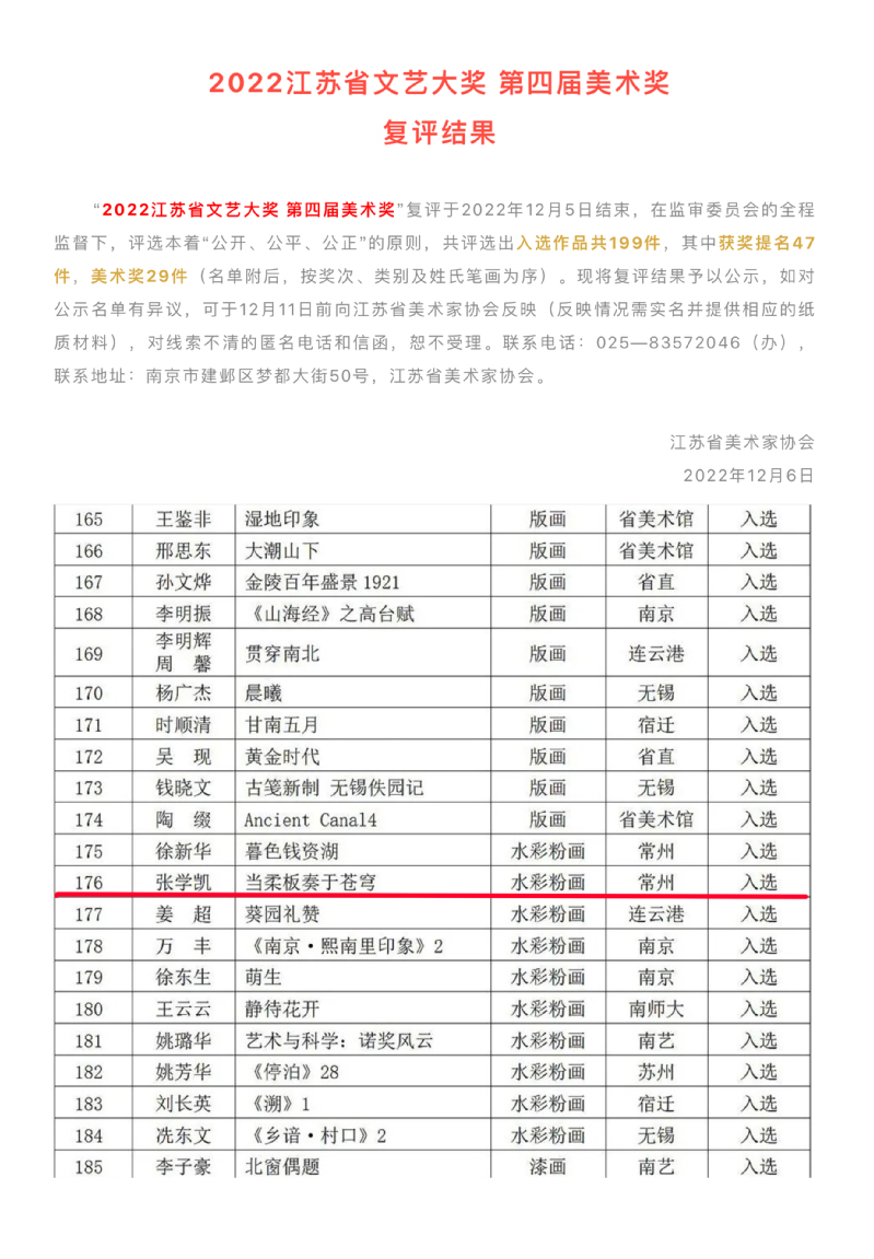 本次展览共收到全省投稿作品近2000件,包括中国画、油画、水彩(粉)画、版画、综合画种及美术理论6个类别。经评审委员会公开、公平、公正的严格评选和监审委员会的全程监审,经过初评、复评,最终评出入选作品199件,公司张学凯老师成功入选。本次入选作品突出了新时代中国的整体面貌,描绘了当下社会的美好生活,抒发了广大美术家对当代中国价值观念的艺术追求,展示了艺术家们的艺术自信和艺术活力。入选作品将于12月中旬在江苏省现代美术馆进行展览。