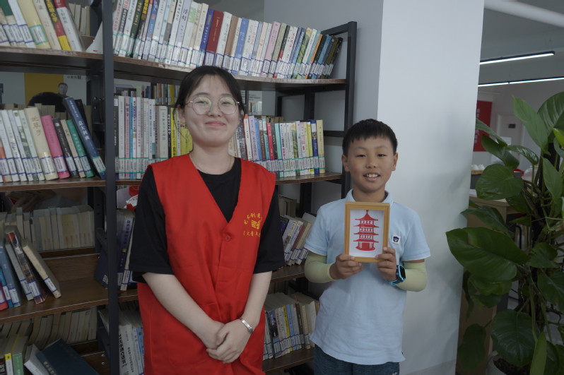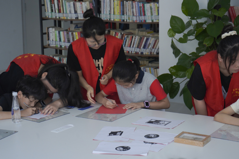 在非遗体验营中,老员工志愿者们还结合自己的专业特色,将国家级非遗项目金坛刻纸带到社区,让小朋友们感受非遗刻纸项目的魅力。在进行非遗刻纸项目体验前,老员工志愿者们还向社区青少年们介绍了刻纸技艺的历史和由来。考虑到小朋友们年龄较小,志愿者们还与小朋友们一一结对,耐心讲解刻纸刀的使用方法和刻纸步骤等。在志愿者大哥哥大姐姐们的帮助和耐心指导下,一幅幅栩栩如生的刻纸作品呈现在了小朋友们的面前。非遗文化蕴含着中华民族博大精深的文化内涵,是我们祖先一百多个民族的智慧结晶,将非遗项目金坛刻纸引入夏令营课堂,有利于帮助小朋友们了解非遗、体验非遗、爱上非遗,传承中华优秀传统文化。