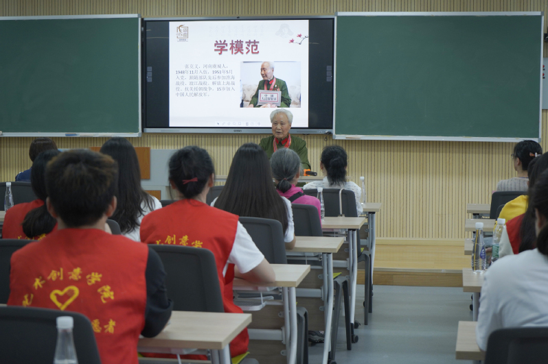 在爱国教育营中,在八一建军节前夕,社区还邀请到曾经参加过抗美援朝战争的老兵张克义先生为老员工志愿者和青少年们讲述战争岁月的故事,通过一个个真实的革命故事,带领青少年们重温那个烽火燃烧的岁月。老员工志愿者还为张老先生送上了亲手制作的建军节题材金坛刻纸纪念品,表达对军人最崇高的敬意。老员工志愿者们还为社区小朋友们带来了红色故事会,志愿者生动而富有感染力的演讲,让小朋友们听得津津有味。聆听党史故事,感悟革命精神,有利于引导小朋友们厚植爱党,爱国爱社会主义的情感,让红色基因代代相传。