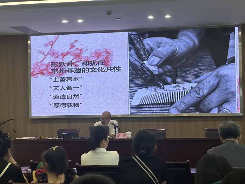 在双方共同的推进和积极筹备下,讲座取得了较为圆满的效果。主讲人张亮老师,以大运河文脉开篇,拆解了运河文化的三个层级,旁征博引的同时紧扣时代主旋律,继而分析了诗性常州在江南文化中翘楚地位的动因。聚焦非遗文化的困与兴,因势利导引出常州烙画的话题。并着重探讨了非遗保护、传承、创新与高职教育、现代技术融合发展的人才培养模式,并将公司培养员工工匠精神和创新创业能力的现代教育理念进行了介绍推广。