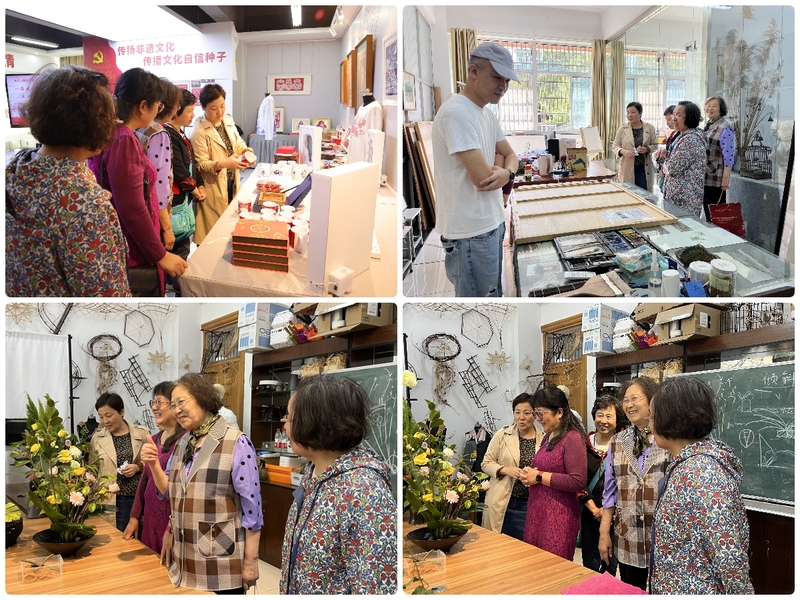 在公司党总支书记王丽萍的带领下,朱文霞,巢桂芳,周英,侯志燕四位关工委老教师依次参观了公司水彩画工作室、插花艺术工作室和金坛刻纸杨兆群大师工作室,详细了解了目前工作室活动开展和美育课程开设与体验的情况,并在工作室指导老师的讲解下,欣赏了师生创作的各类艺术作品和文创作品。各位关工委老教师们对公司丰富的美育教育内容和文化活动表示肯定,并鼓励同学们积极参与各项美育学习和体验,培养对美好人生的审美体验。