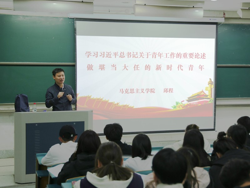邱程老师结合党史,从青年是推进中国现代化进程的磅礴力量、建设中国特色社会主义的中流砥柱、实现中华民族伟大复兴的重要依靠三个层面结合生动的故事阐述了青年人在各个历史时期发挥的重要作用。一代人有一代人的长征,一代人有一代人的使命。青年一代有理想、有本领、有担当,国家就有前途、民族就有希望。最后,邱程老师还勉励同学们要把刻苦学习作为进步的阶梯,要把伟大实践作为奋斗的舞台,新时代的中国已为中国青年搭建了人生出彩的广阔舞台。广大青年当志存高远、脚踏实地勇做时代的弄潮儿,在实现中国梦的新征程中放飞青春梦想在为人民利益的不懈奋斗中书写人生华章。