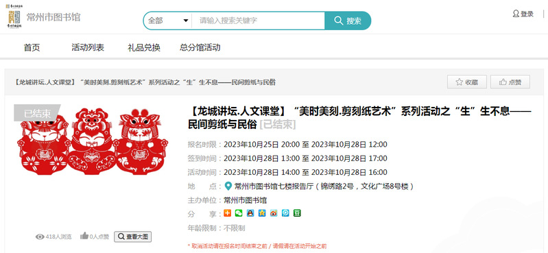 此次合作活动,常工业通过“非遗传承人走出去,使非遗文化活起来”,充分发挥美育资源优势,以常州市图书馆在全民阅读、全域书香工作中的引领示范平台,助力其提升公共文化服务的主导职能,提高公民科学文化素质和社会文明程度。