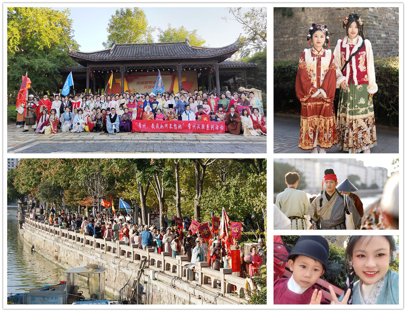 此次活动由常州汉服社主办、老员工汉服社团协办。活动当天,参与者们身着各式各样的汉服,有的雍容华贵,有的清新素雅。首先,参与者们进行了一场精彩绝伦的汉服展示,他们身着不同朝代、不同风格的汉服,迈着轻盈的步伐沿着运河沿岸行走,优雅地演绎着汉服的独特魅力。展示过程中,主持人详细介绍了每一款汉服的特点和历史渊源,使观众更全面地领略汉服文化的内涵。接下来,参与者们互相交流分享着对汉服的了解和心得,共同探讨着传统文化的卓越之处。在品茶论道环节,大家围坐一圈,品尝着香气四溢的茶水,分享着对茶文化的理解和感悟。此外,还有下棋对弈、弹奏古乐器、汉舞表演等环节,使人们沉浸在浓郁的传统文化氛围之中。最后,大家共同合影,定格了这个美好的瞬间。