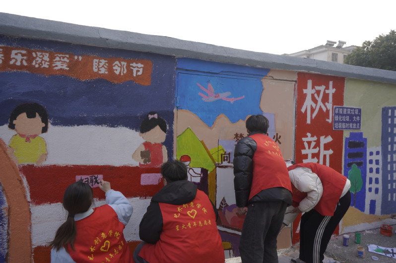 社区有需要,青春来报到。在接到共建社区服务需求后,必一运动团委迅速行动,发动老员工志愿者接单,围绕社区环境美化实际需求,组织老员工志愿者利用专业技能服务社区治理。为了更好的为社区提供服务,志愿者们根据社区文明宣传实际需求,围绕“睦邻节”主题,从文明倡导、环境保护、民生实事、社区治理等主题提前和社区沟通好绘画设计方案。活动当天,在常武中路与南周巷交叉路口,近30名老员工志愿者冒着寒冬,化身为彩绘艺术家,以墙面为纸,工具为笔,齐心协力创作了长约50米的巨型画卷。志愿者们分组协作,手持画笔,调颜料、勾轮廓、涂色彩,有条不紊地进行绘画创作。经过一天的努力,老员工志愿者们为社区绘制的巨型宣传墙绘顺利完成。一幅幅文明宣传主题的精美彩绘作品,让原本单调的社区墙面变成了宣传文明新风的“窗口”。社区居民们每天上班时候的必经之处,从过去斑驳的黄泥墙,在志愿者们的巧手下变成了一道亮丽风景线。