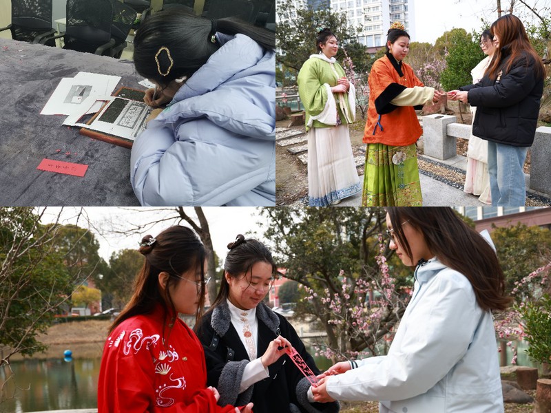 必一运动非遗研学创新工坊的同学们在节日来临前,精心设计制作了一批富有心意的刻纸书签,上面写满了对同学的美好祝福,节日当天,成员们带着美好的祝愿,为校园内的师生们派送自己制作的小礼物,为女生们送上了一份节日的祝福和春日的惊喜,希望她们在以后的每一天都能幸福快乐。