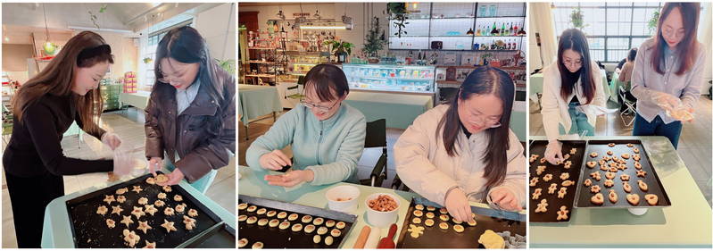 活动现场,听完店长介绍的饼干制作流程后,老师们个个摩拳擦掌,跃跃欲试。揉面、切片、塑形、点缀、创作,大家互相配合协作,忙得不亦乐乎!开心之情溢于言表,现场弥漫着快乐和幸福的味道,大家瞬间由“小白”变身“西点大师”。老师们纷纷表示,通过活动,大家不仅增长了烘焙知识和技能,放松了心情,释放了工作压力,体验了DIY的乐趣,还增进了彼此间的交流合作,感受到了生活的美好和公司大家庭的温暖。