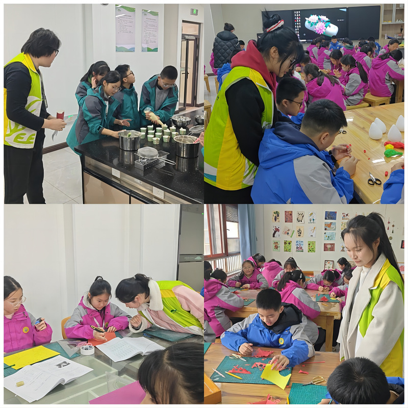 在烘焙课堂上,首先向孩子们介绍了烘焙的基本知识和安全注意事项。随后,引导他们动手制作简单的糕点和甜点,从称量原料到搅拌面糊,每一个步骤都让孩子们充满好奇和兴奋。在老师和“助教”的耐心指导下,孩子们不仅学会了烘焙的基本技巧,还在实践中体会到了劳动的乐趣和成果的甜美。剪纸工作坊则展现了中国传统文化的魅力。助教们向孩子们展示了剪纸艺术的历史和基本技巧,引导他们用剪刀和彩纸创作出各种图案。孩子们在动手操作中感受到了剪纸艺术的独特魅力,同时也对中国传统文化有了更深的理解和认识。绘画课程上,艺术公司的助教们通过引导员工观察自然和生活,激发他们的绘画灵感。员工们学习了不同的绘画技巧和表现手法,从素描到水彩,从抽象到写实,每一幅作品都是员工们内心世界的反映。其他的工坊,无论是创造与实践相结合的木工、泥土与艺术交融的陶艺还是展现时尚与个性的服装设计,同学们都展现了他们的专业技能、教育热情和高度的责任感。