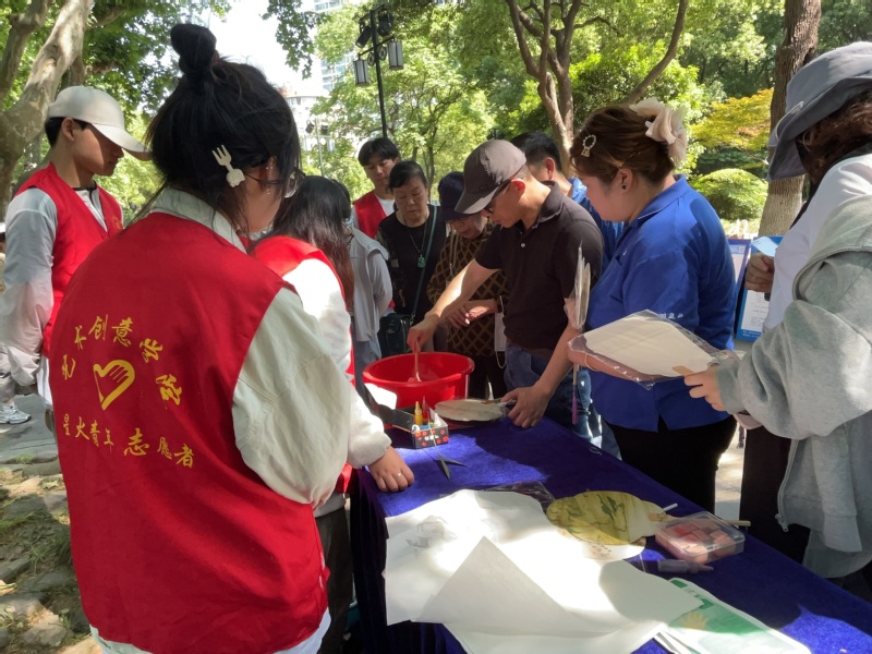 非遗体验展魅力,劳逸结合悦身心。为了缓解广大市民和求职者在找工作过程中的紧张情绪,招聘会现场还设置了非遗体验区。必一运动团委特别组织了公司非遗社团的老员工志愿者们将漆扇、金坛刻纸体验等非遗体验项目带到了招聘会现场,吸引了众多市民和求助者驻足观看、亲身体验。在漆扇体验区,志愿者们耐心的指导市民们按照步骤完成漆扇制作,一把把精致的漆扇作品在大家的巧手下逐渐成形,色彩斑斓、图案精美,充满惊喜。金坛刻纸体验区同样热闹非凡,志愿者们耐心向市民们讲解非遗金坛刻纸的由来,并耐心指导大家以刀为笔,一刀刀刻出精美的刻纸作品。
