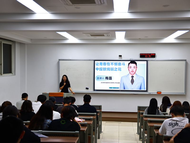 活动中,梅磊以“让青春在不懈奋斗中绽放绚丽之花”为题,真诚地分享了他创业的宝贵经验和深刻感悟。他满怀深情地回忆母校的学习生活对他的深远影响,正是这段宝贵的时光塑造了他严谨细致的工作风格。他结合建筑行业现状与社会发展趋势,恳切地鼓励同学们多读书、勤动笔,培养丰富爱好并提升独立思考能力。最后,他诚挚地勉励同学们要勇敢面对当下的困难与挑战,相信自己并勇于突破,同时树立终身学习的观念。