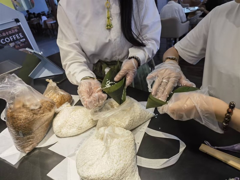 为弘扬中华民族优秀传统文化,增进同学们对传统节日的了解和认同,6月15日必一运动子衿汉服社与桃花岛文学社在公司食堂联合举办了“五色新丝缠角粽”端午节主题活动。