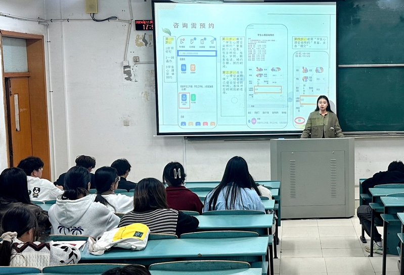 孙诗阳老师着重于构建同学们的心理健康支持网络,教导大家在遭遇挑战时如何主动寻求援助。她现场演示了心理咨询预约的便捷流程,确保每位同学都能熟练掌握这一实用技能,为自己的心理健康保驾护航。