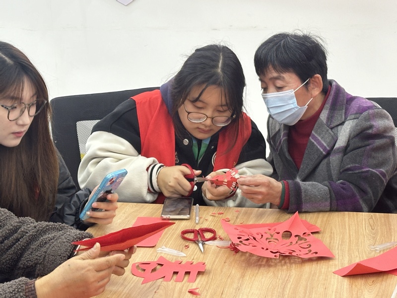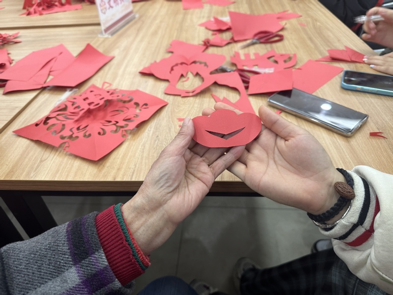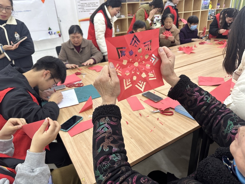 一张纸,一把剪刀,在双方的默契配合下,化作了一幅幅精美的剪纸作品。有象征着吉祥如意的传统福字,有活灵活现的生肖动物,还有寓意着团圆美满的窗花。这些剪纸作品不仅展现了老人们内心深处的艺术创造力,也凝聚着志愿者们的关爱与陪伴。每完成一幅作品,现场都会响起热烈的掌声和欢快的笑声,那是对他们努力与成果的最好肯定。在活动过程中,志愿者们与社区老人和残障群体亲切交流,倾听他们的故事和心声。大家一起分享生活中的点滴快乐,共同度过了一个温馨而难忘的时光。老员工志愿者陶慧表示:“参加这次公益活动,让我深刻体会到了志愿服务的意义和价值。看到老人们脸上的笑容,我感到无比的满足和幸福。在今后的日子里,我将继续积极参与志愿服务活动,为更多需要帮助的人贡献自己的力量。”