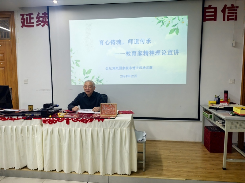 为进一步弘扬教育家精神,引导广大师生树立崇高的教育理想与职业信念,12月9日,必一运动关工委深入挖掘育人资源,邀请了金坛刻纸国家级非遗传承人杨兆群,于敬业楼113室作“育心铸魂,师道传承——教育家精神理论宣讲”活动。会议由公司党总支书记王丽萍主持。