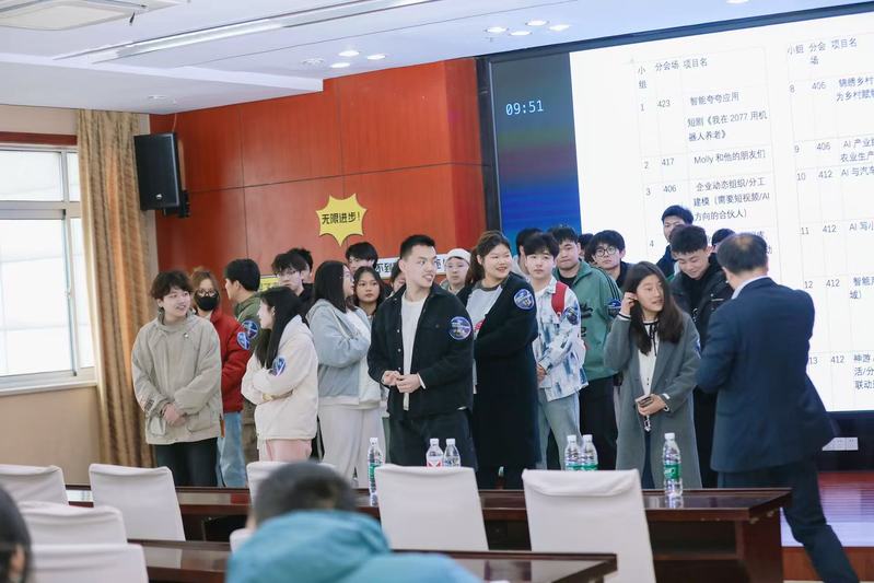 在比赛中,团队分阶段展示核心成果:分组研讨阶段,运用AI算法分析生态数据,提出低碳景观规划方案;预路演中,通过虚拟现实技术呈现智慧农业与绿色建筑协同场景;巅峰路演环节,以兴化垛田为例,阐释AI如何提升农田利用率并保护文化遗产,赢得评委与观众高度认可。