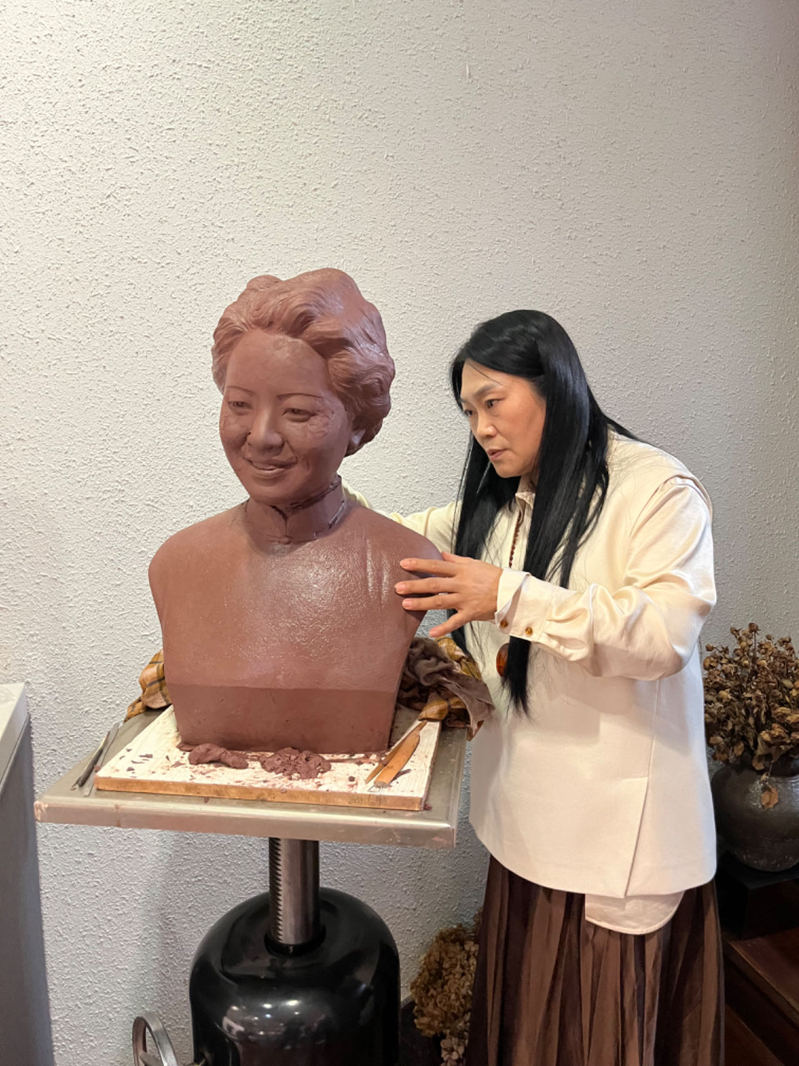 为了准确地表现钱秀玲温和而坚韧的特质,王晓丽选择了适合展现她形象的泥料和创作手法。“在造型上,我选择她身着旗袍、凝视远方的姿态,既展现东方女性的典雅,也传递她心怀天下的格局;既有江南水乡的温婉,又透出济世救人的刚毅。在塑造面部细节时,我通过对肌肉的起伏、五官的比例以及皮肤质感的处理,力求向世人传达她丰富的内心世界。”王晓丽介绍道。