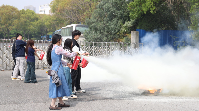 活动伊始,公司保卫处叶鸿源老师结合校园消防安全实际,围绕火灾预防、消防器材使用等核心内容进行细致讲解。他以典型案例分析火灾隐患,强调“预防为主、防消结合”的重要性,并现场演示了灭火器“一提二拔三握四压”的正确操作步骤,以及面对不同类型火源的应对策略。随后,叶老师进行灭火示范,浓烟中精准扑灭“起火点”的规范操作赢得师生阵阵掌声。