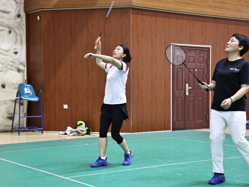 比赛设置了师生男双、女双和混合双打三大竞技单元,教师与员工进行对打,通过循环赛角逐胜负,随着裁判一声哨响,比赛正式拉开帷幕。
