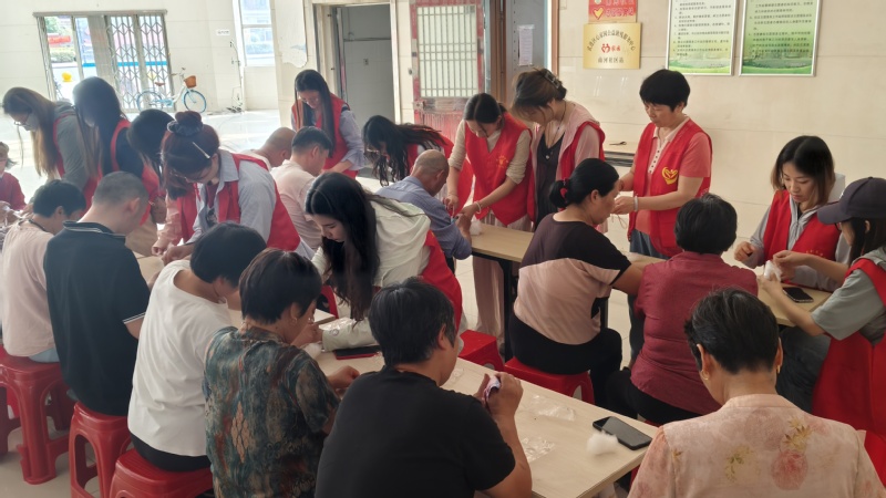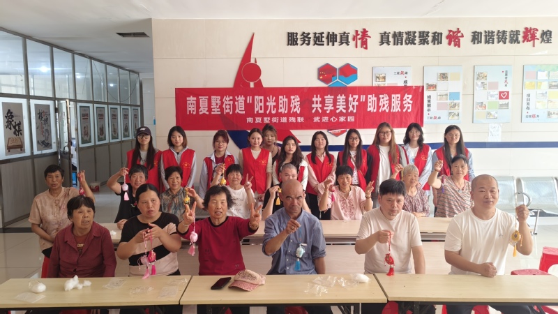 在志愿者一对一的贴心协助下,残障朋友们纷纷拿起材料,专注地投入到香囊制作中。他们小心翼翼地将艾草装入香囊,灵巧地扎紧绳结,不一会儿,一个个造型别致、香气四溢的香囊便在大家手中诞生。制作过程中,欢声笑语不断,志愿者与残障朋友们热情交流,彼此分享制作技巧和心得,现场氛围温馨融洽。大家兴奋地展示着自己的作品,空气中弥漫的艾草清香,仿佛也在诉说着团圆与幸福的美好愿景。