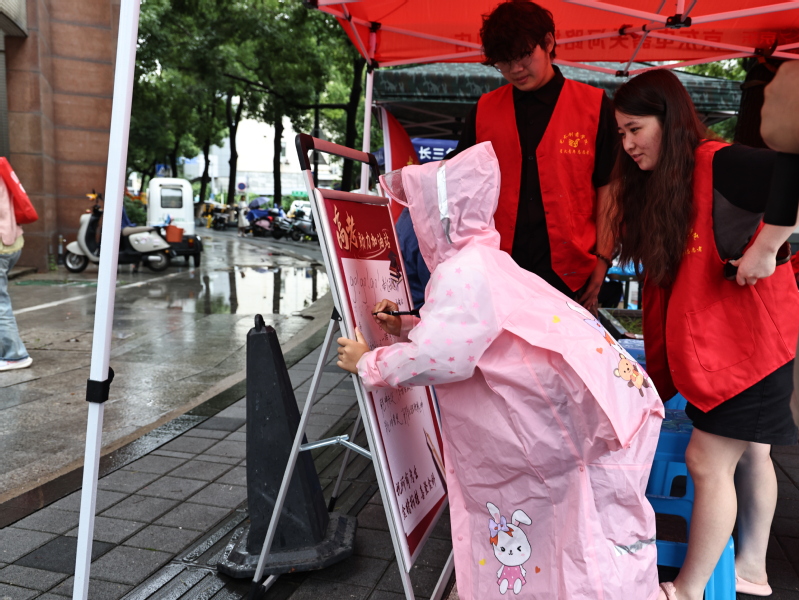 活动现场,“高考助力加油站”布置得温馨而有序。充足的饮用水整齐摆放,为前来赴考的考生和考场外焦灼等待的家长及时补充水分,驱散暑气。一面承载着满满祝福的寄语墙格外引人注目,老员工志愿者们用五彩的便签纸,工整书写着激励话语与美好祝愿,“沉着冷静,笔下生花”“愿你合上笔盖的刹那,有着侠客收剑入鞘的骄傲”,一笔一划间,都是对考生的真诚鼓励。
