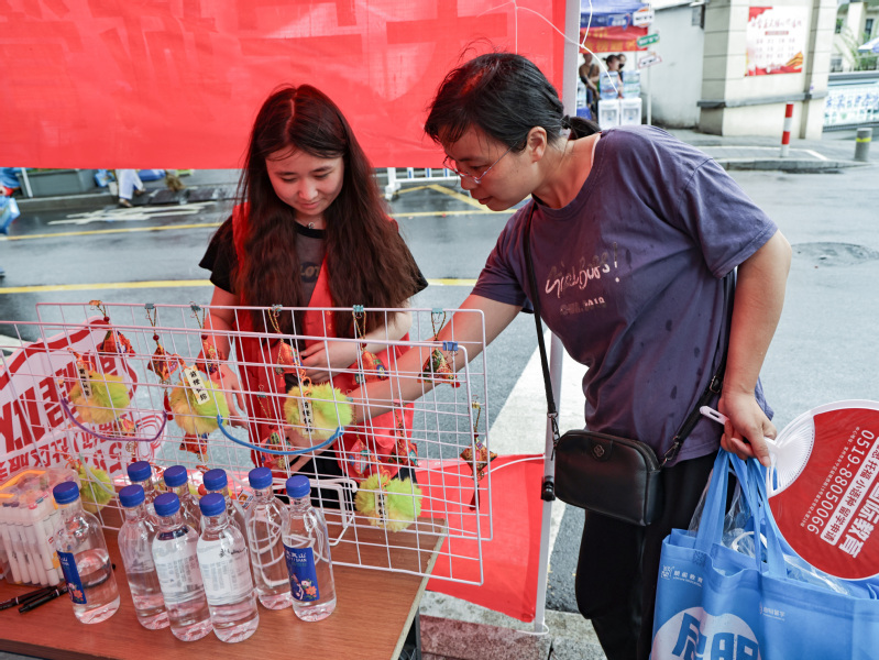 老员工志愿者们还联合社区为高考学子准备了具有特色和美好寓意的粽子香囊。香囊虽小,却承载着“高中(粽)”的美好寓意。志愿者们将这些凝聚着心意的香囊送到考生和家长手中,既传递了传统民俗文化,也缓解了大家紧张的情绪,为严肃的高考增添了一份别样的温情。